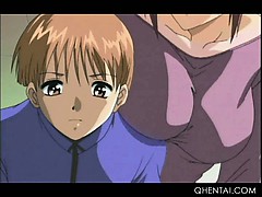 Busty hentai redhead gives BJ in sixtynine and gets fucked