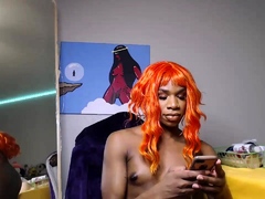 Transsexual black beauty plays with her cock