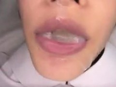 Buxom Japanese schoolgirl with a superb ass orgasms on a ra